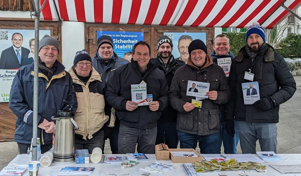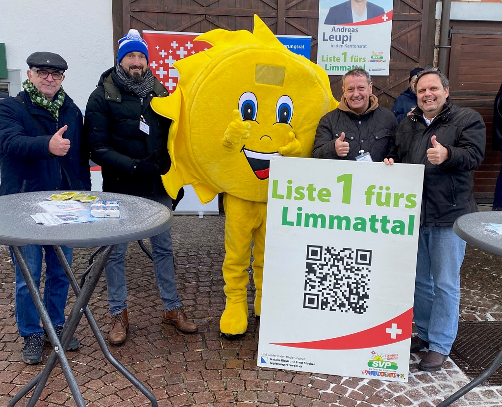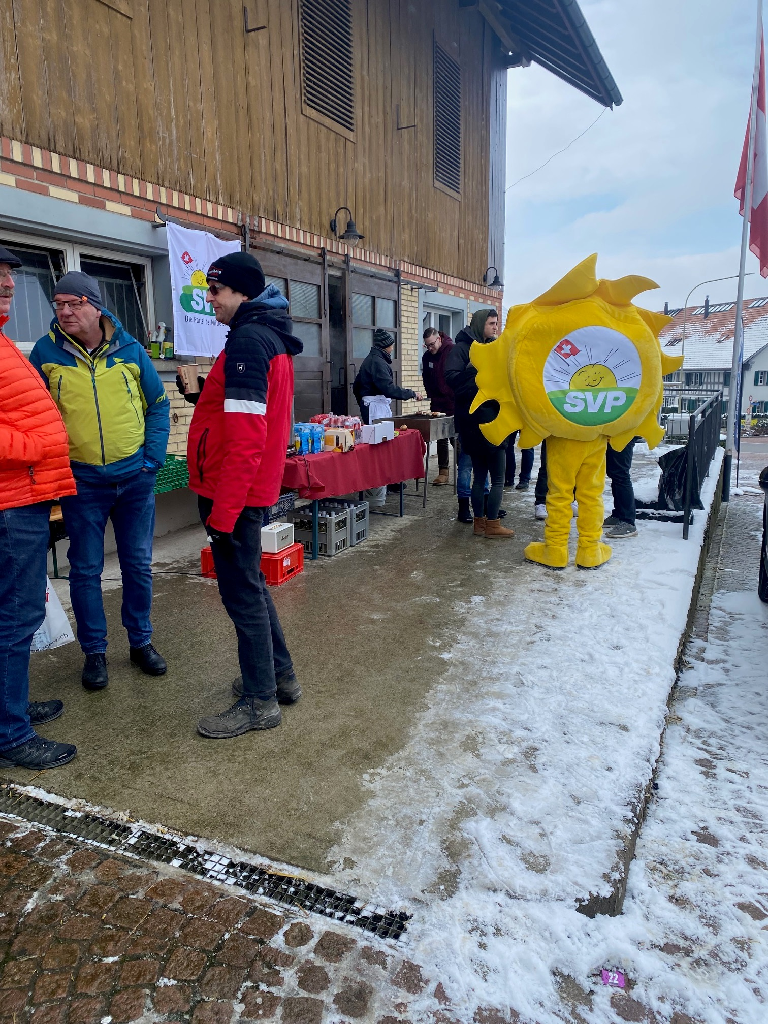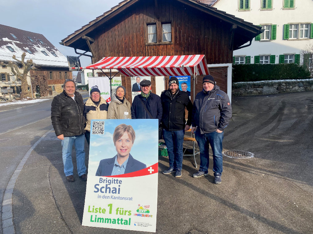 Der Start fand in Oetwil an der Limmat bei klarer und kühler Luft statt. Die Verantwortlichen in Oetwil haben noch feine «Spitzbuben» mit einem Kleber «Liste 1» zum Verteilen organisiert – diese wurden gerne entgegengenommen. Parallel fand der Anlass in Aesch vor dem Volg statt. Gegen 10.30 Uhr wurde gewechselt. Last but not least: der Anlass in Uitikon vor Edi’s Metzgerei war ein Highlight und guter Abschluss der Anlässe #5 – #6 – #7. Die SVP Uitikon verteilte Wurst und Brot und zum Trinken gab es Bier sowie feinen Glühwein.