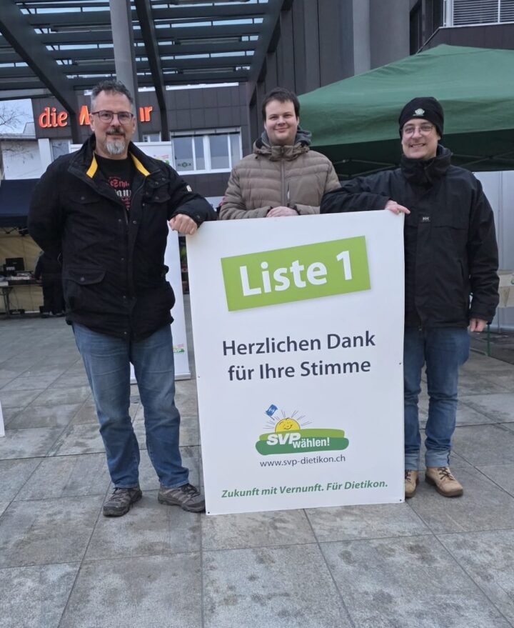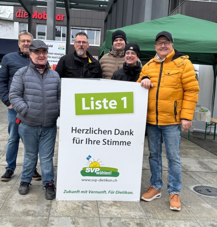 Die SVP Dietikon setzt auf Präsenz statt Hinterzimmerpolitik. Wir suchen das Gespräch, übernehmen Verantwortung und stehen geschlossen für eine starke Zukunft unserer Stadt ein. Wir haben uns über die vielen positiven Kontakte sehr gefreut – und freuen uns über jede einzelne Stimme am 8. März.